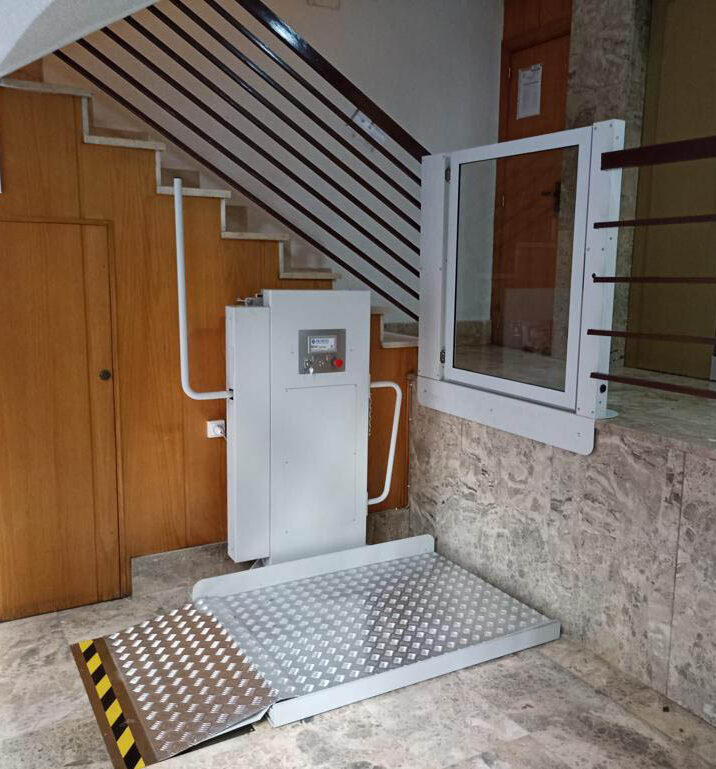 Piattaforma elevatrice progettata senza bisogno di effettuare scavi o altri interventi edilizi. I tempi di installazione sono ridotti al minimo grazie a una componentistica già precablata.